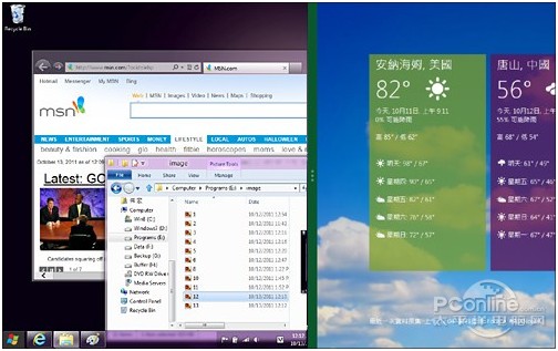 Win7的分屏功能一直被很多用户津津乐道,Win8不仅同样能提供分屏功能,而且比Win7更强大,却又同样易用。