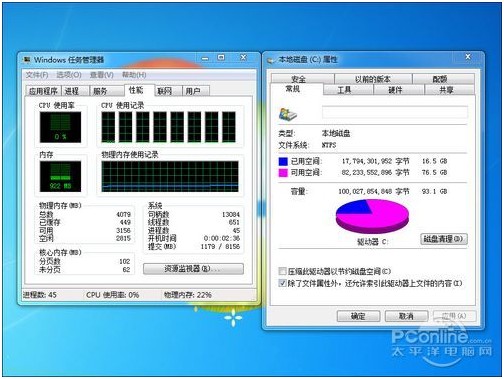 分析小结:不跑测试,光靠系统自身的软件和工具,我们可以基本判断Win8相对Win7明显改进了内存占用,或者还有内存性能,不过CPU性能方面有没有改进,我们还看不出端倪。